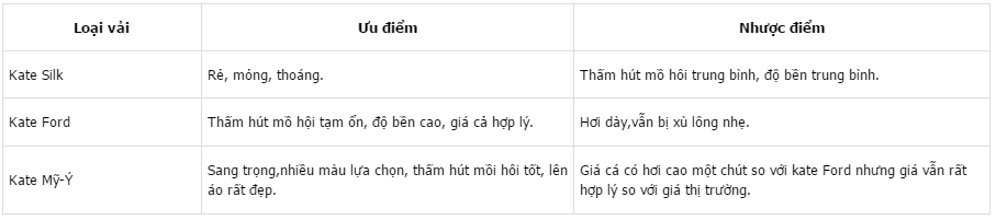 Tóm lại: Trong các loại vải Kate thì Kate Ý là mát nhất và Kate Mỹ là đẹp nhất.